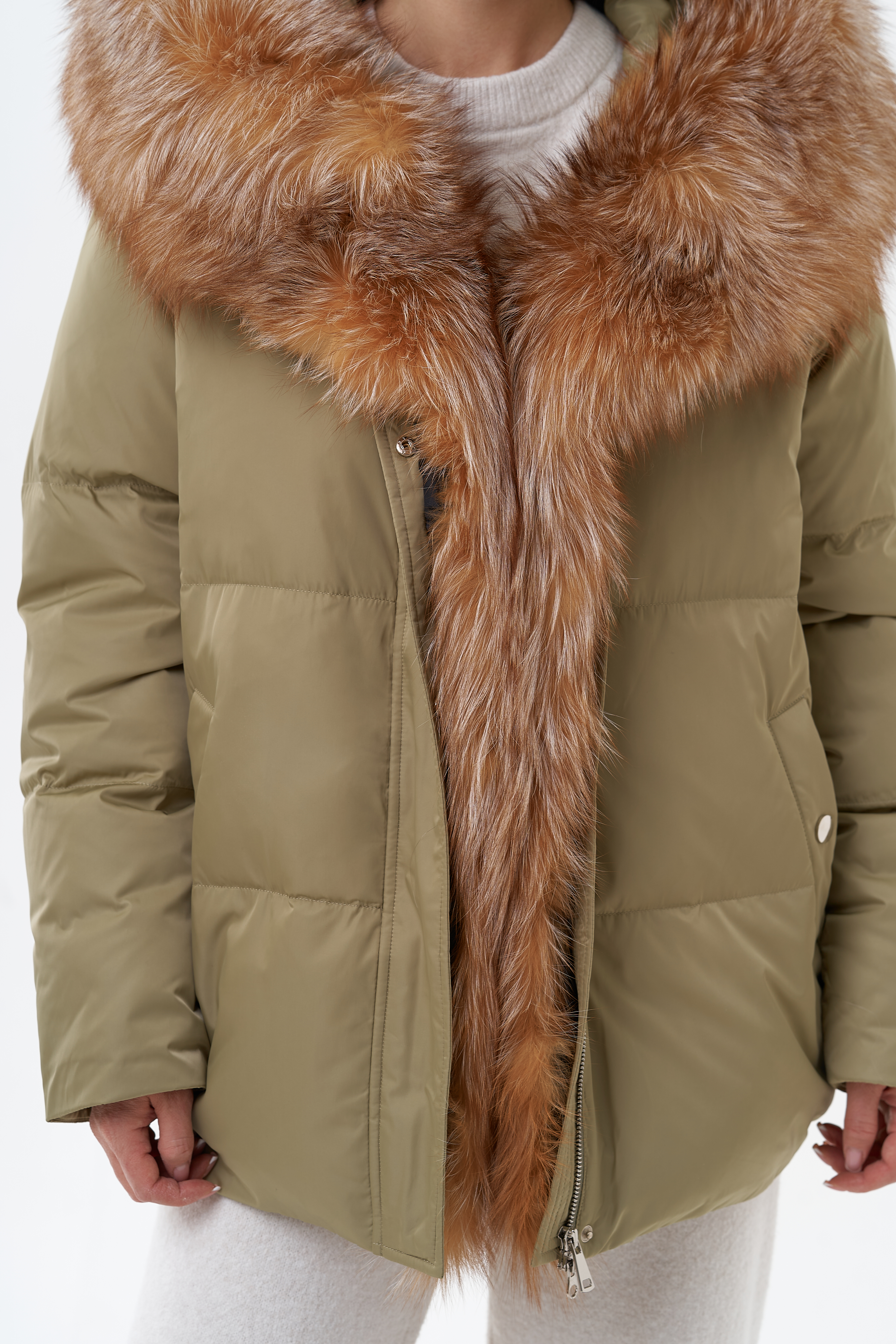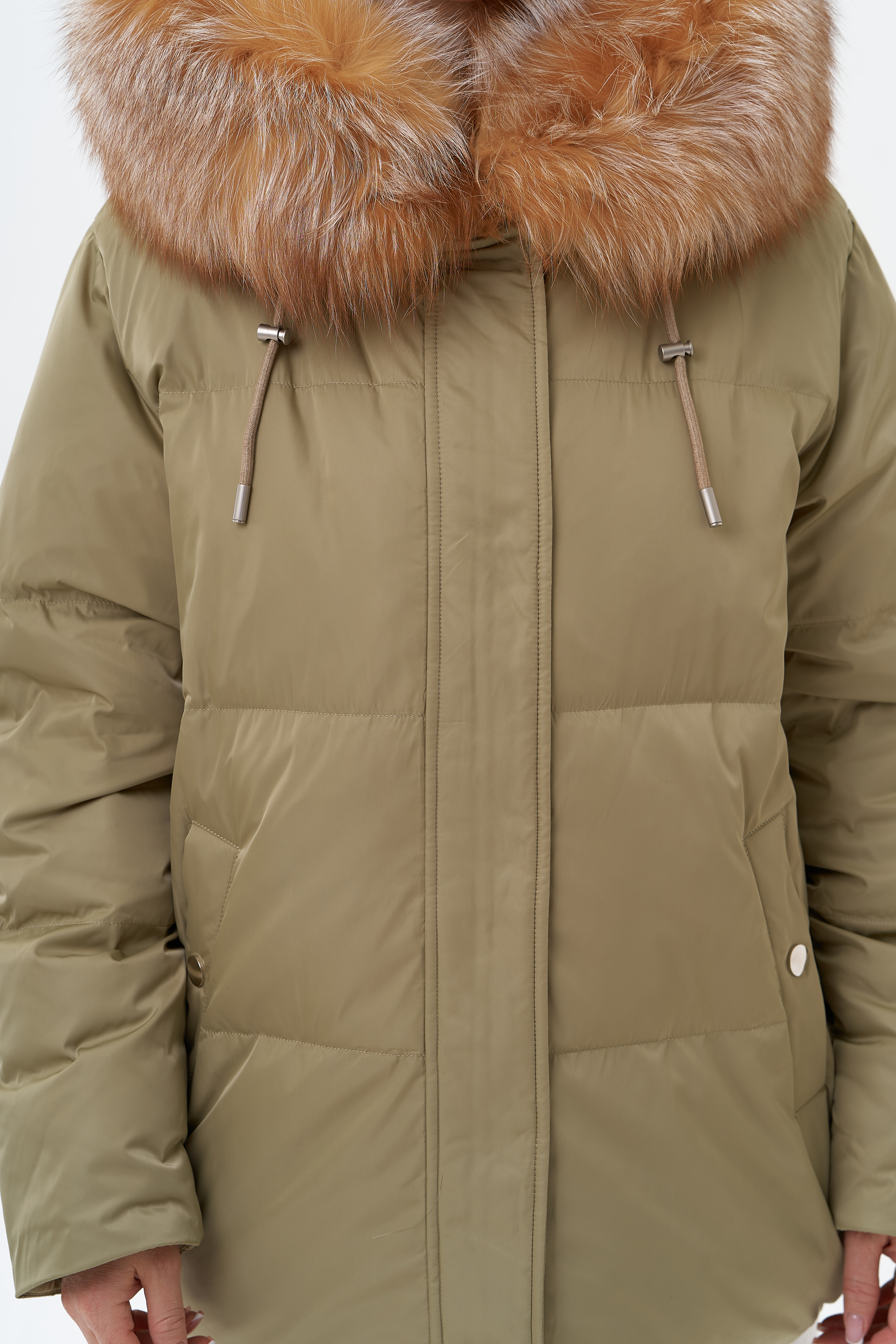 Крой воротника - капюшон, отделка лиса