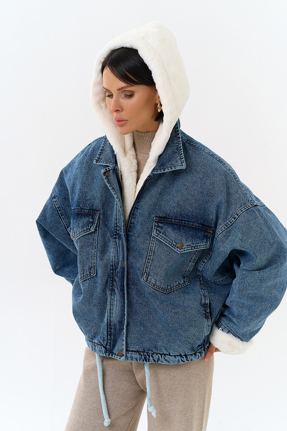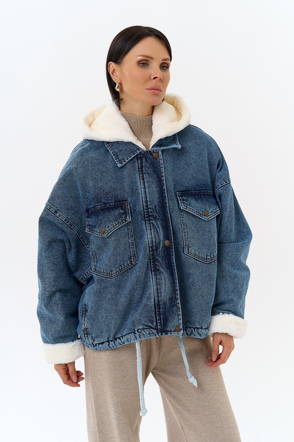 Крой воротника - съемный капюшон, отделка эко мех
