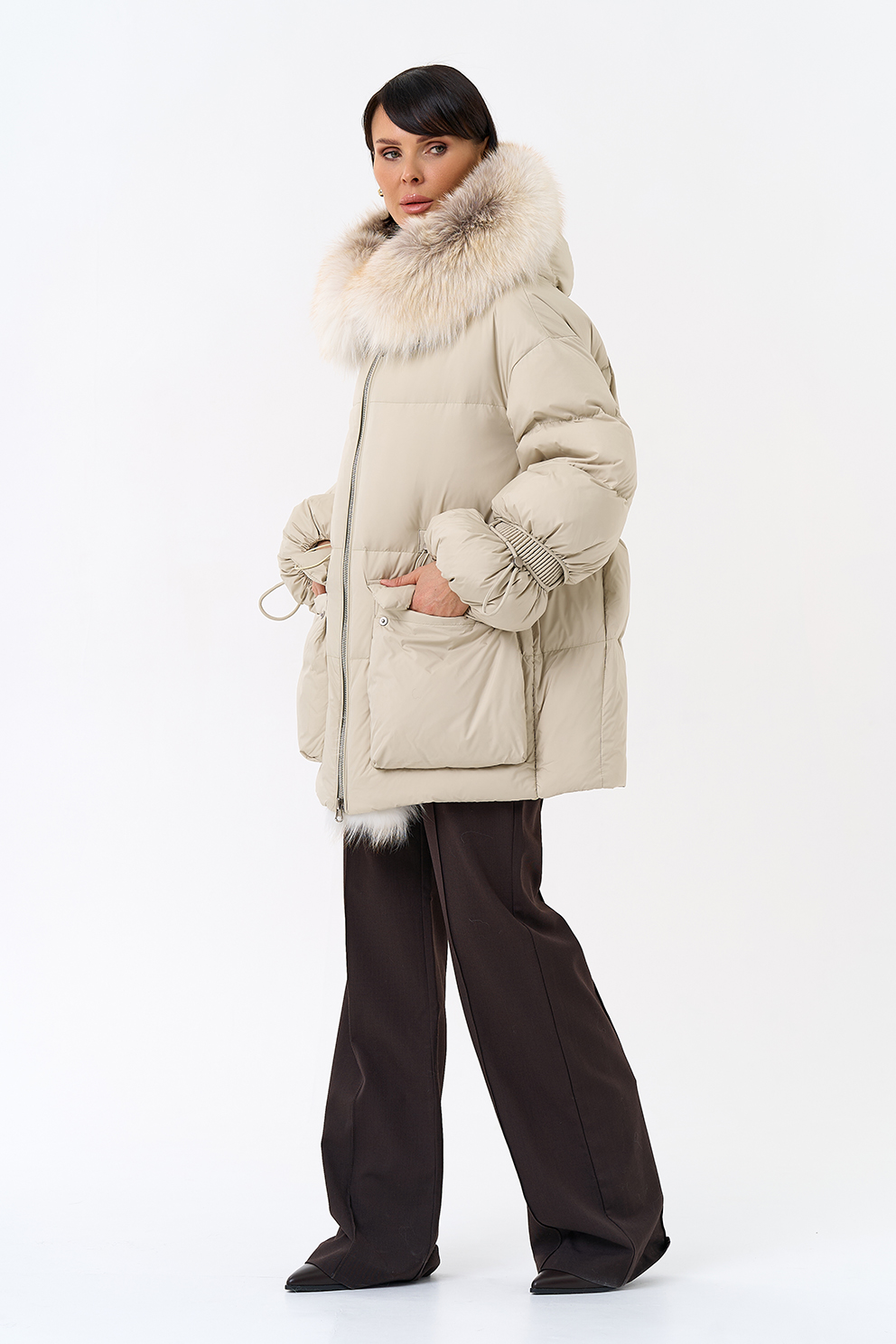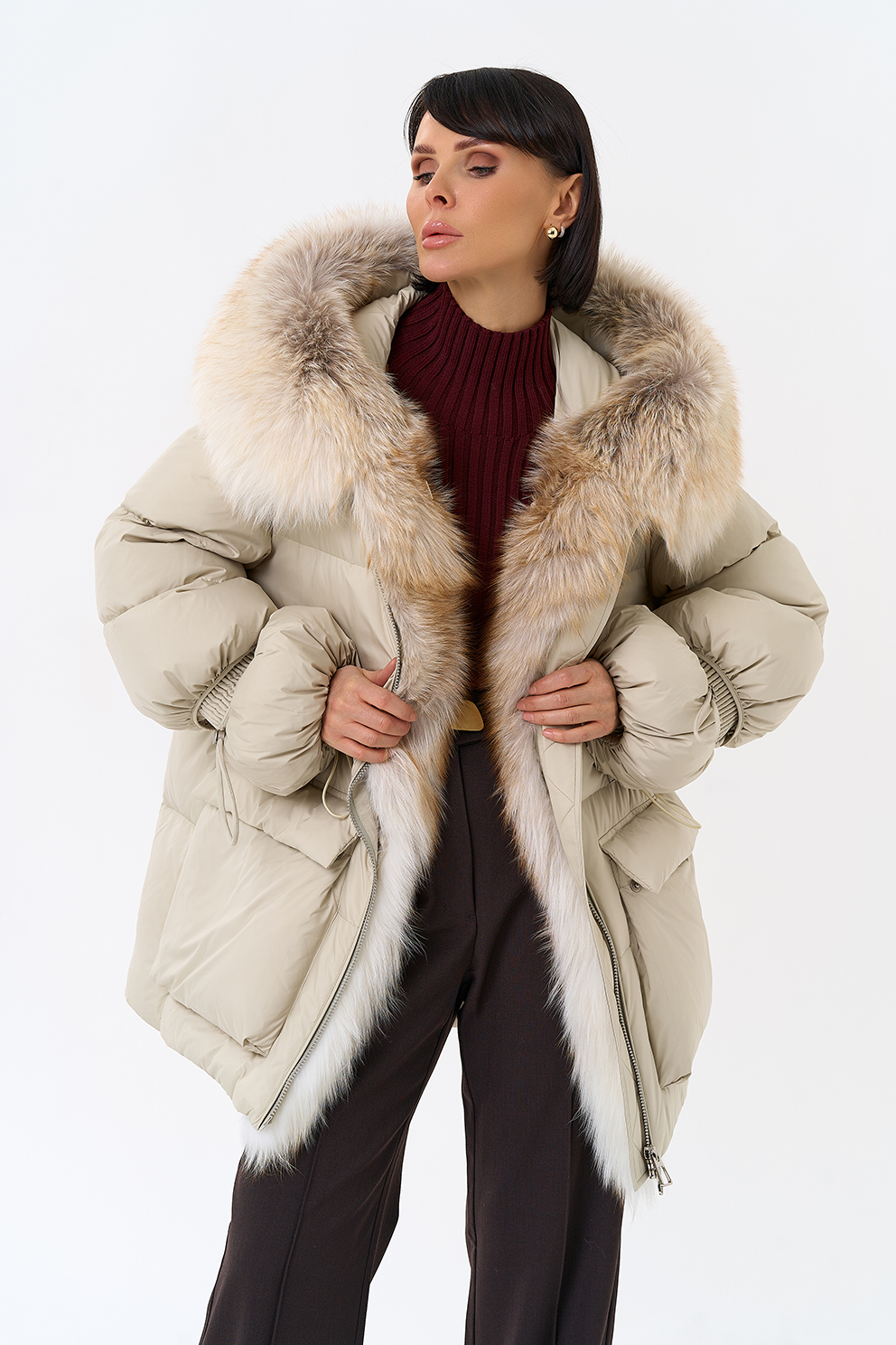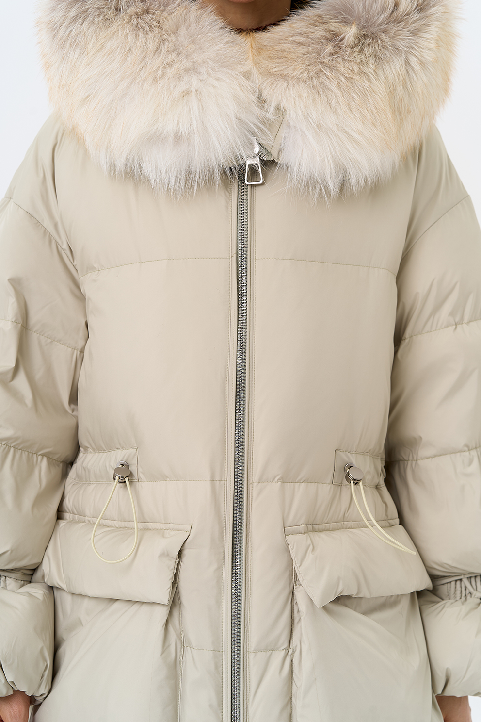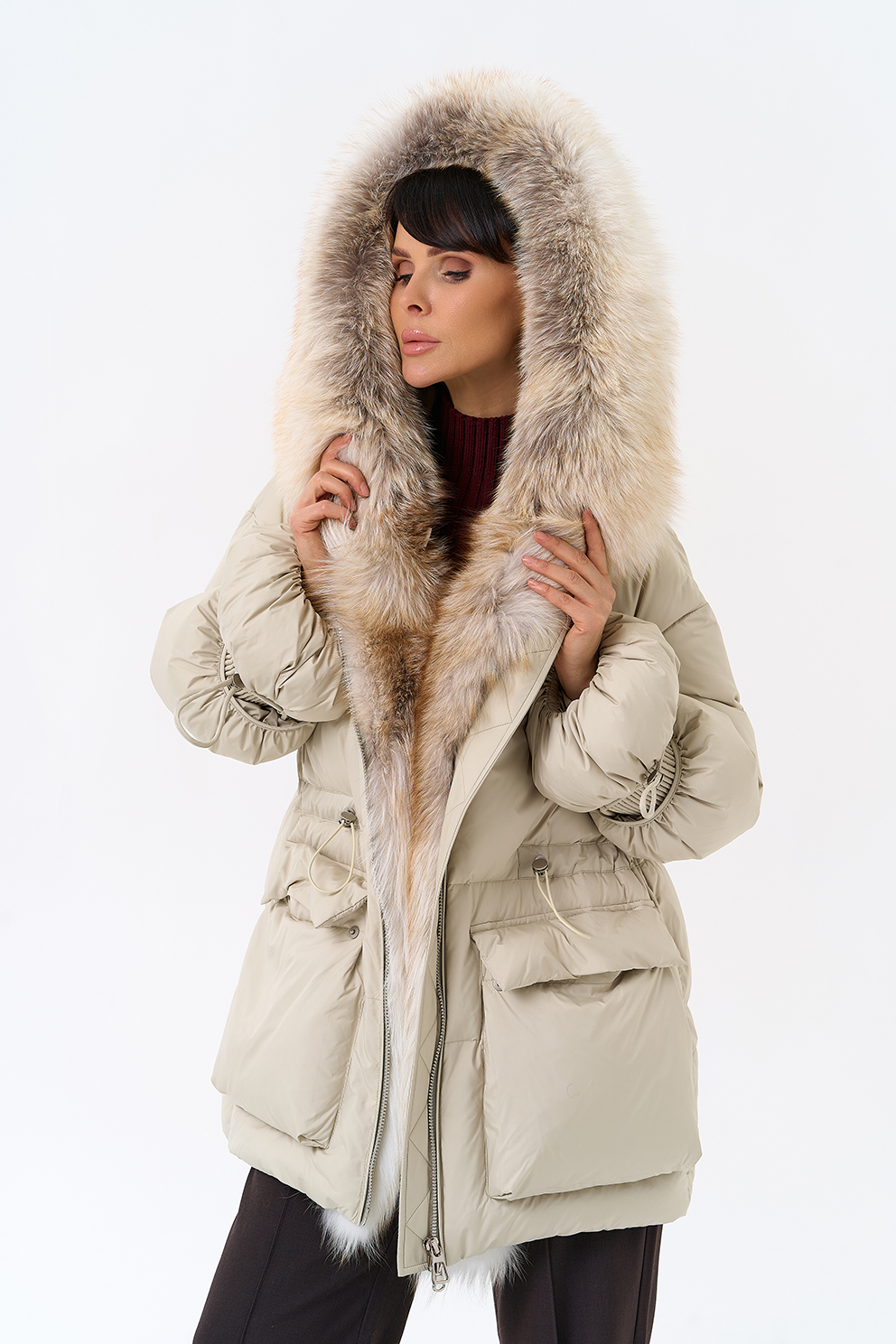 Крой воротника - капюшон, отделка лиса
