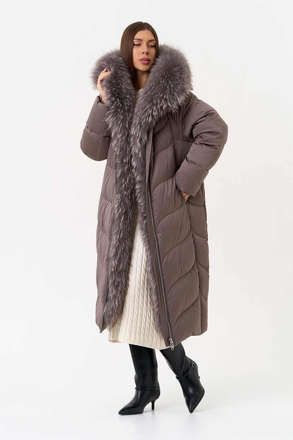 Крой воротника - капюшон, отделка лиса