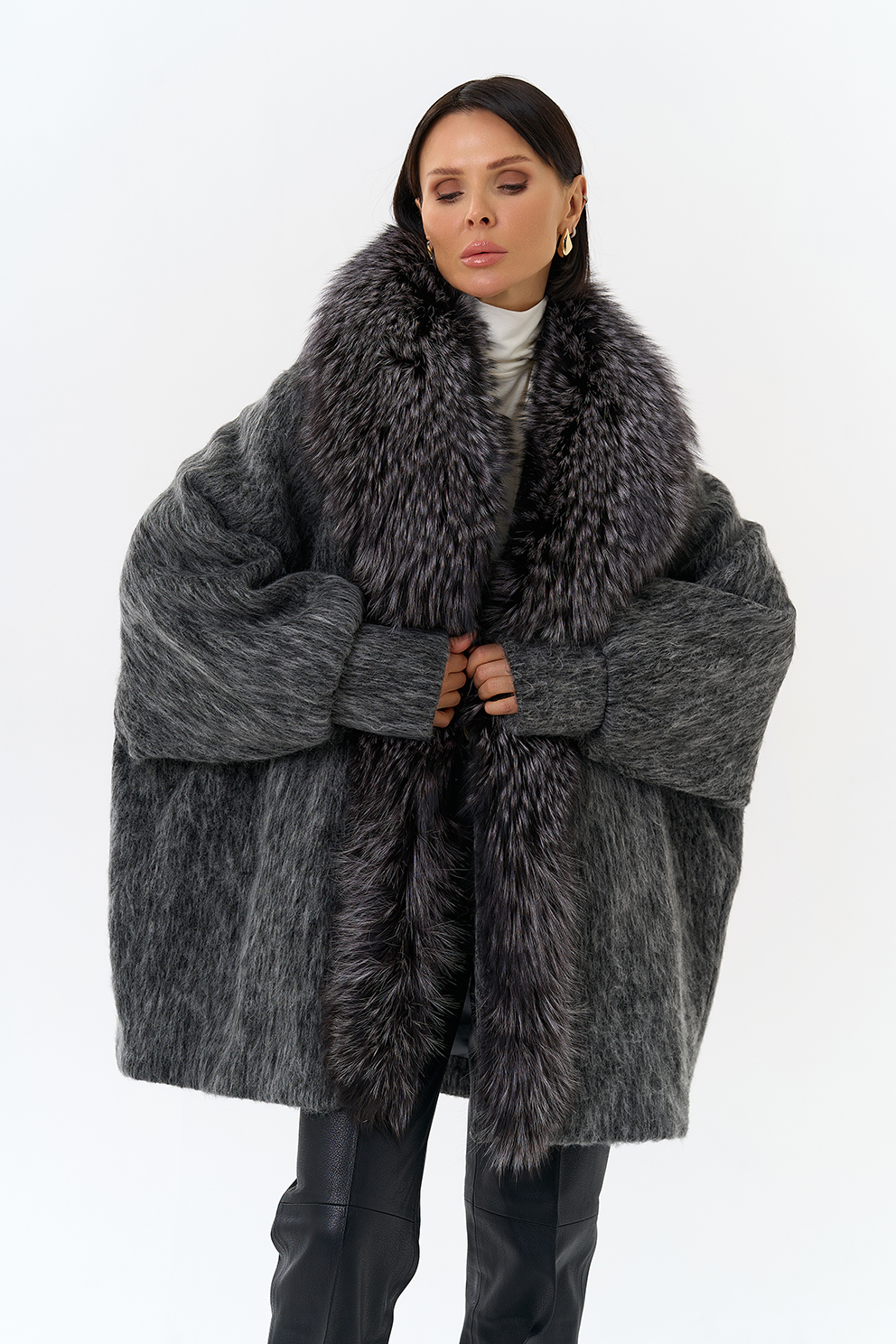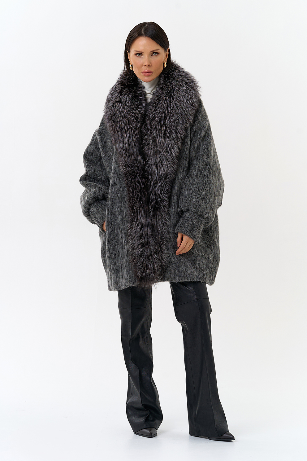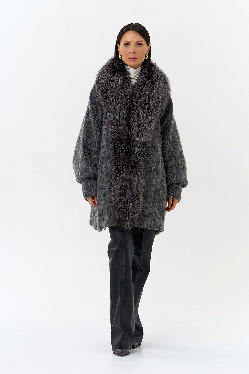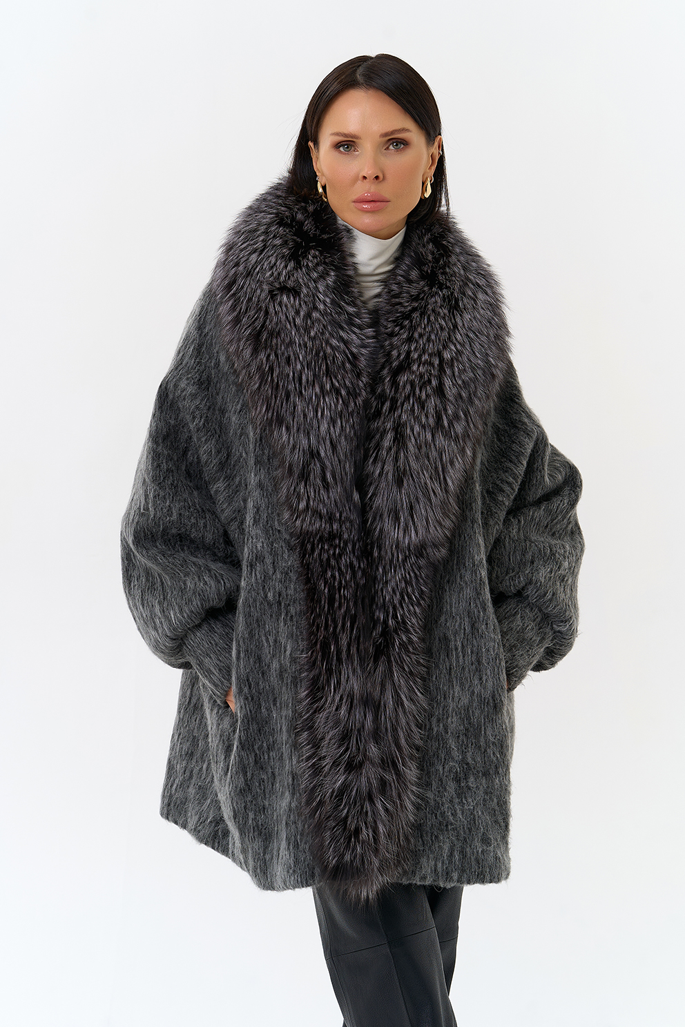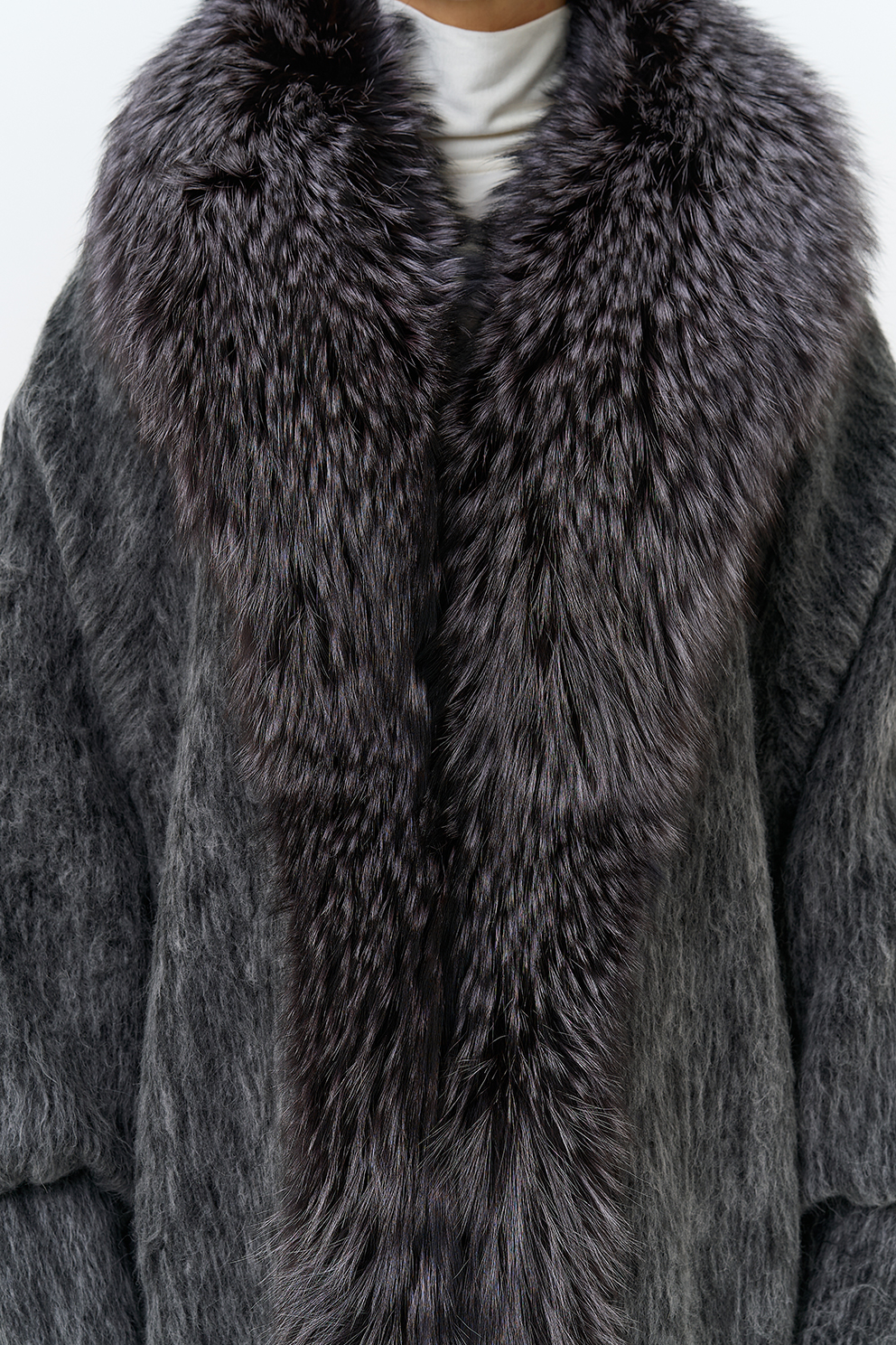 Крой воротника - V-образный, отделка чернобурка