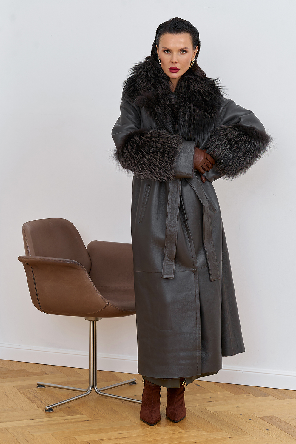 Отделка рукава - мех лисы, цвет серый