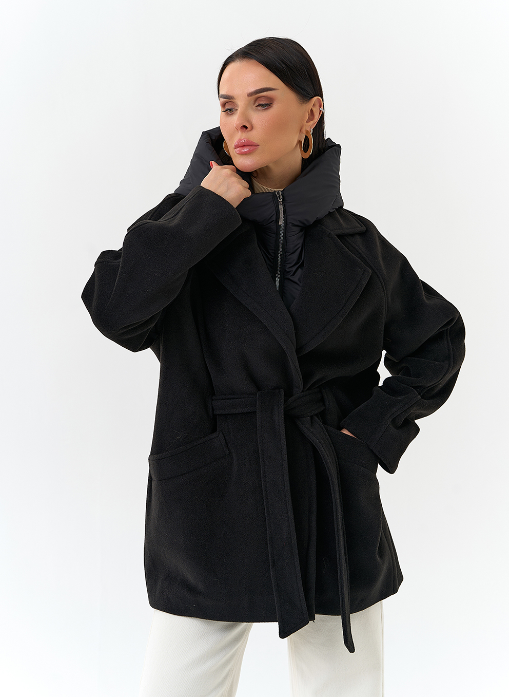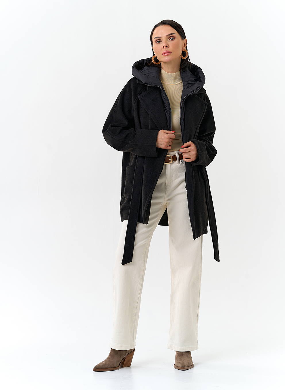 Крой воротника - съемный капюшон, английский воротник
