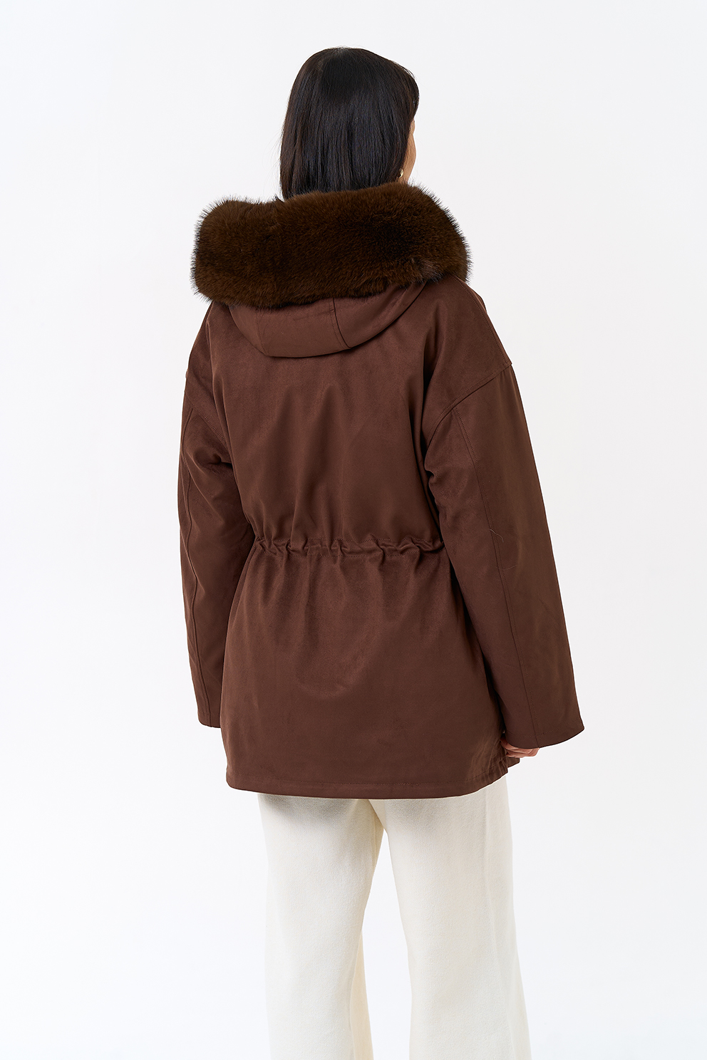 Отделка воротника - эко мех, цвет коричневый