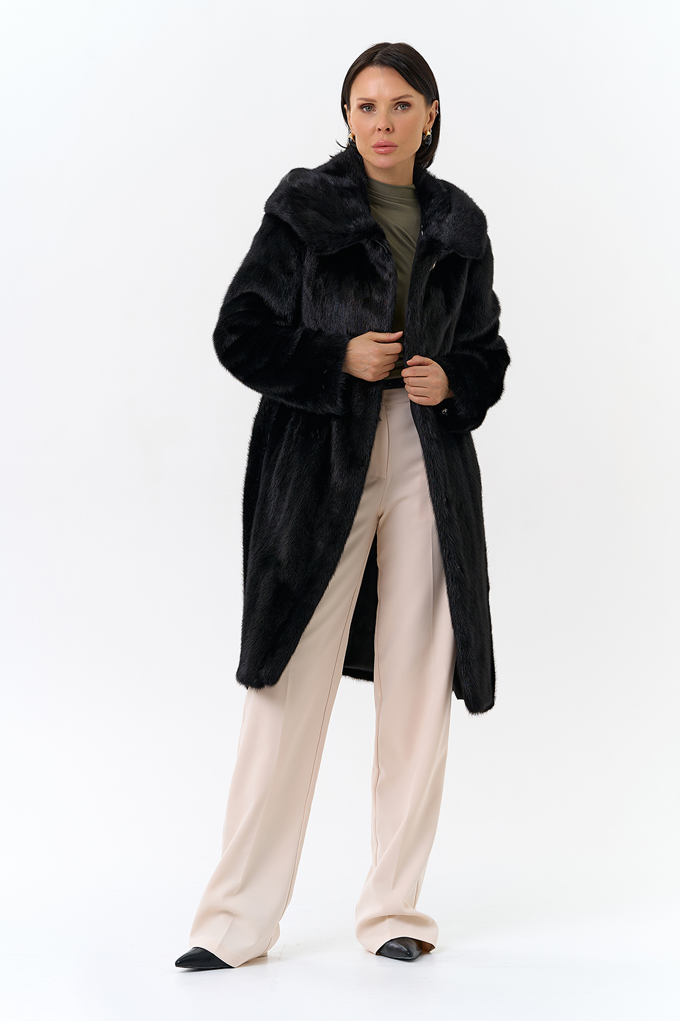 Норковая шуба прямая под пояс